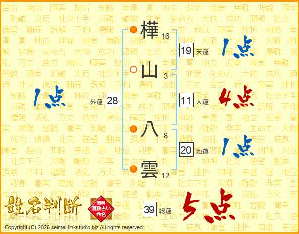 樺山八雲さんの総運は39画の5点!