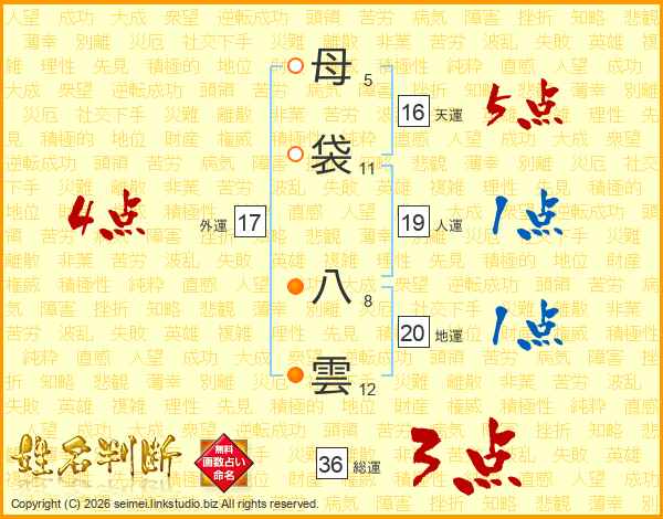 母袋八雲さんの外運は17画の4点!