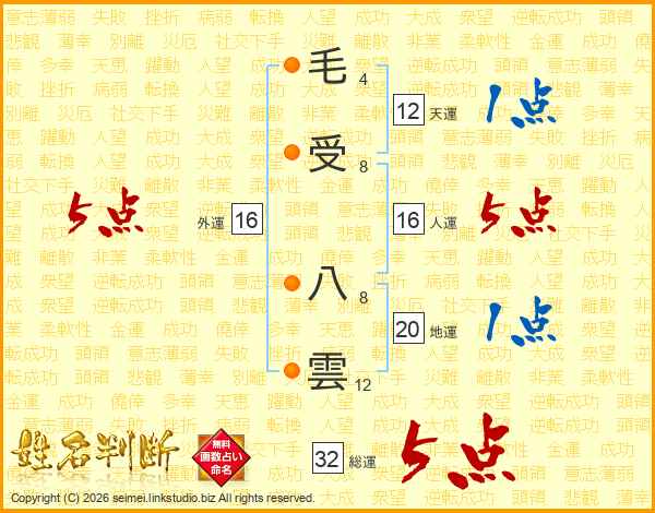 毛受八雲さんの総運は32画の5点!