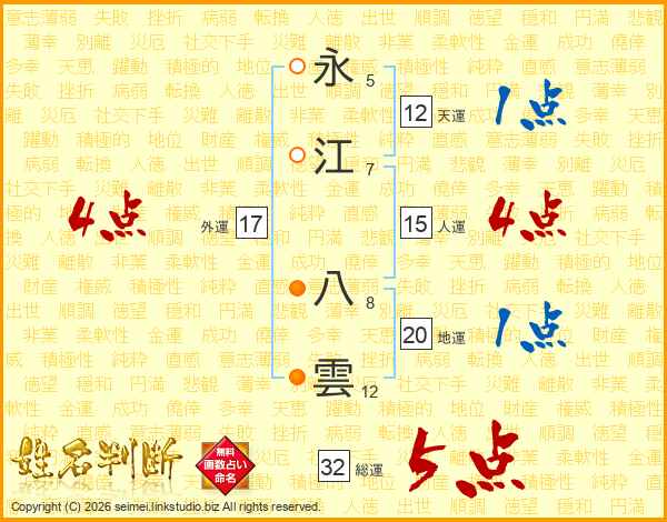永江八雲さんの総運は32画の5点!