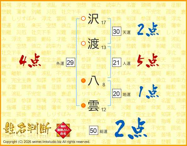 沢渡八雲さんの総運は50画の2点!