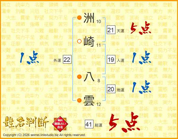 洲(10画)崎(11画) 八(8画)雲(12画)
