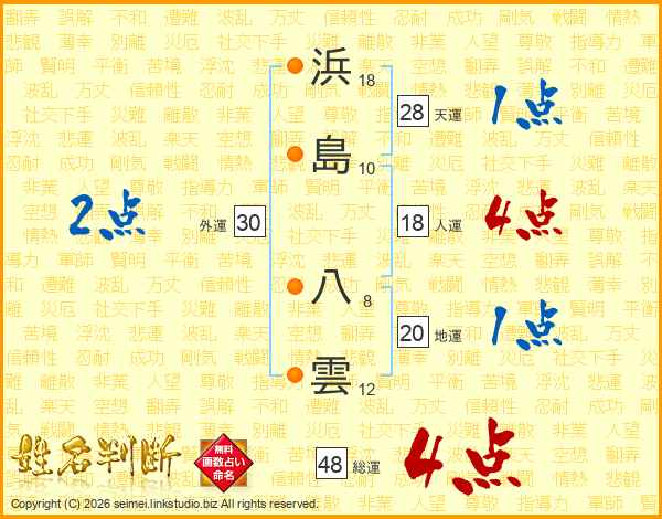 浜島八雲さんの総運は48画の4点!