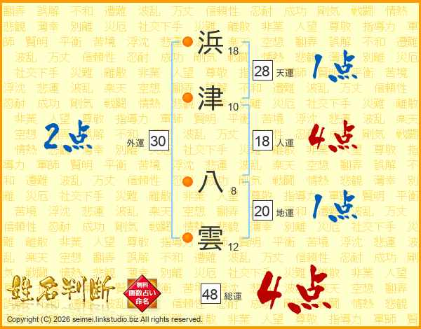浜津八雲さんの総運は48画の4点!