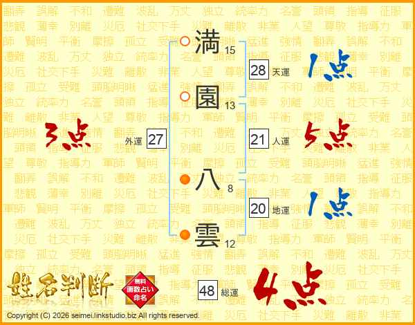 満園八雲さんの総運は48画の4点!