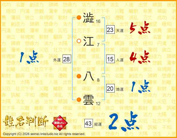 澁江八雲さんの総運は43画の2点!