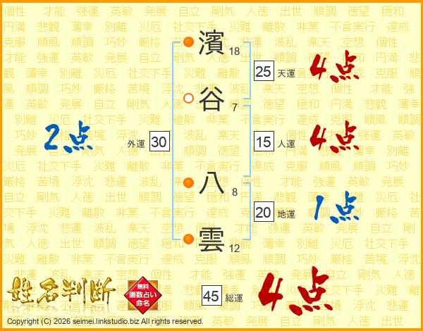 濱(18画)谷(7画) 八(8画)雲(12画)
