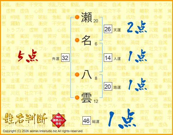 瀬名八雲さんの天運は26画の2点!