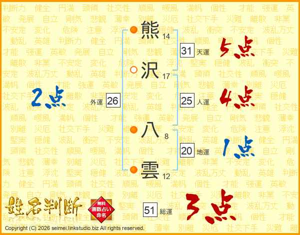 熊沢八雲さんの総運は51画の3点!