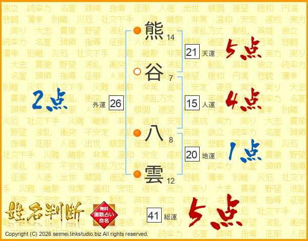 熊谷八雲さんの天運は21画の5点!