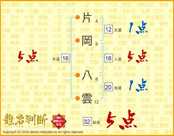 片岡八雲さんの総運は32画の5点!