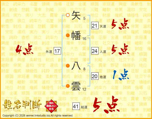 矢(5画)幡(16画) 八(8画)雲(12画)