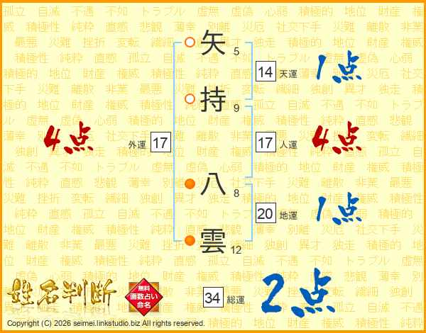 矢持八雲さんの外運は17画の4点!