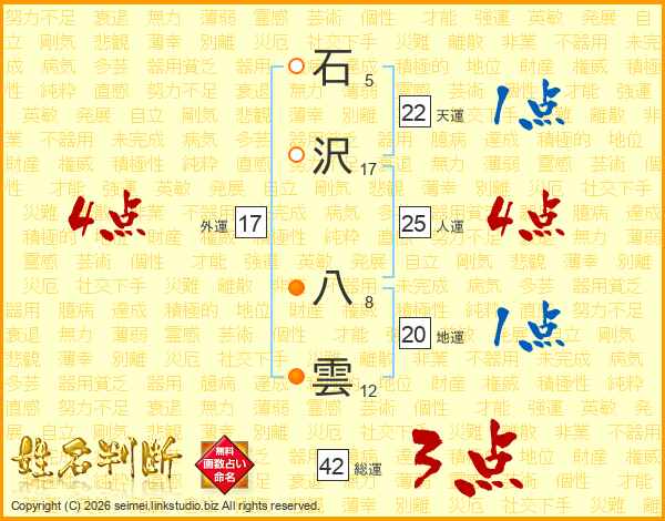 石沢八雲さんの外運は17画の4点!