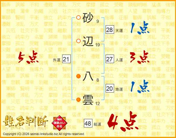 砂辺八雲さんの総運は48画の4点!