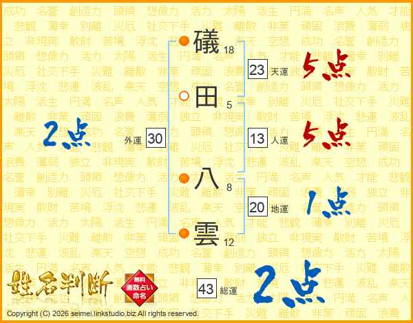 礒田八雲さんの人運は13画の5点!