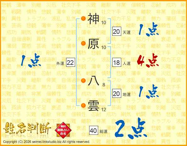 神原八雲さんの総運は40画の2点!
