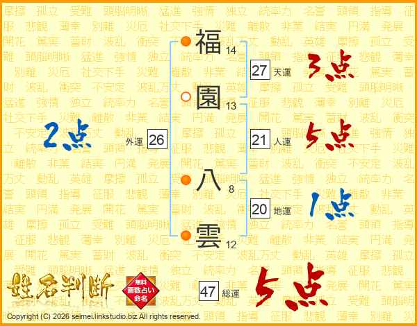 福園八雲さんの総運は47画の5点!