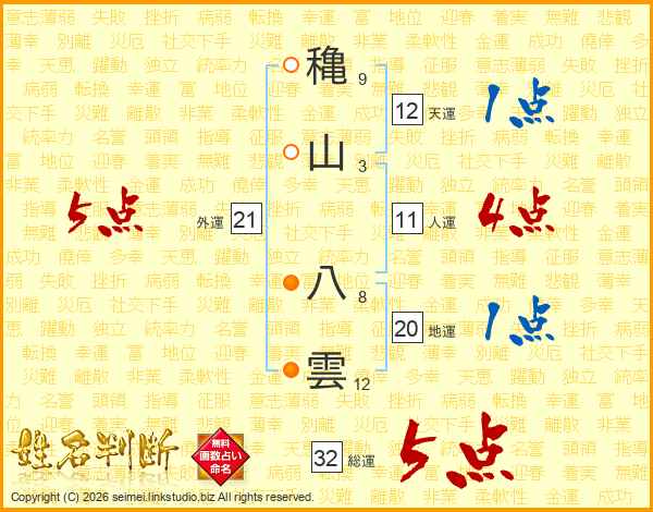 穐山八雲さんの総運は32画の5点!