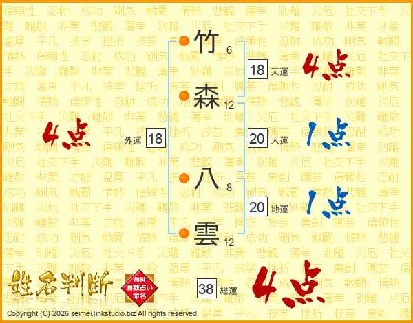 竹森八雲さんの外運は18画の4点!