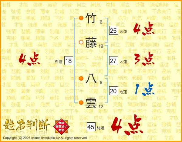 竹藤八雲さんの天運は25画の4点!