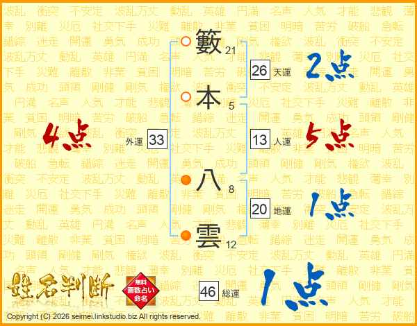 籔本八雲さんの天運は26画の2点!