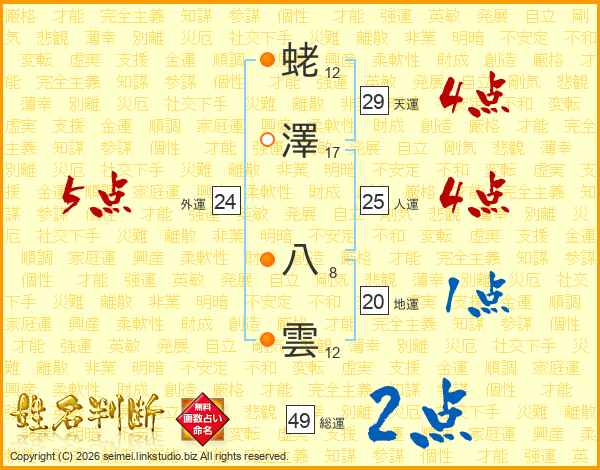 蛯(12画)澤(17画) 八(8画)雲(12画)