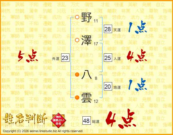 野澤八雲さんの総運は48画の4点!