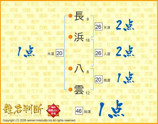 長浜八雲さんの人運は26画の2点!