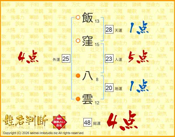 飯窪八雲さんの総運は48画の4点!