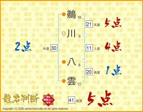 鵜川八雲さんの天運は21画の5点!