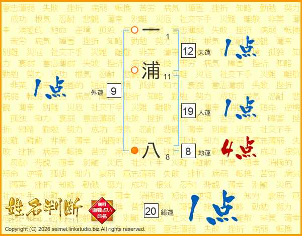 一浦八さんの人運は19画の1点!