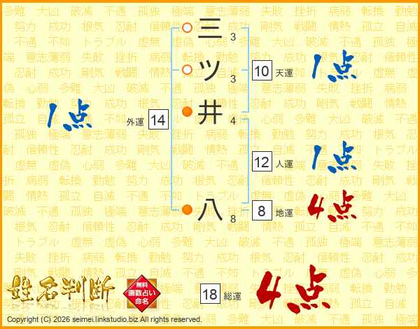 三ツ井八さんの総運は18画の4点!