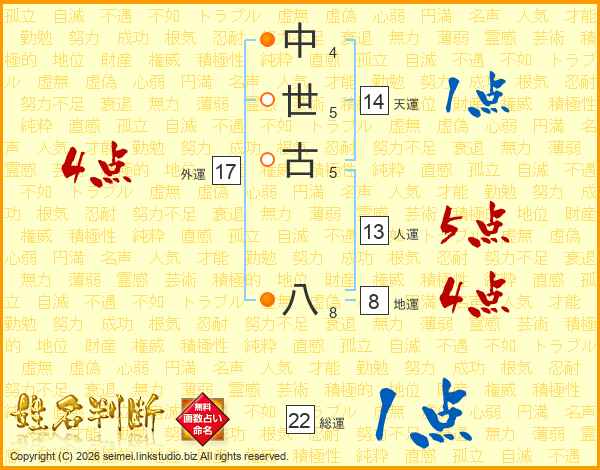 中世古八さんの人運は13画の5点!
