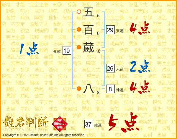 五百蔵八さんの総運は37画の5点!