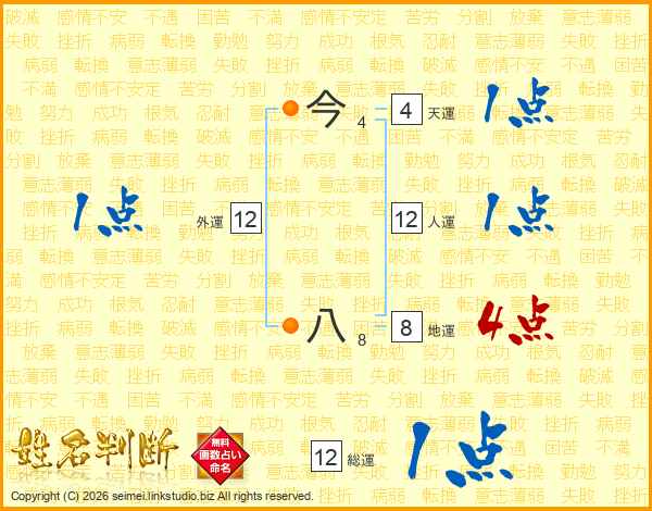 今八さんの総運は12画の1点!