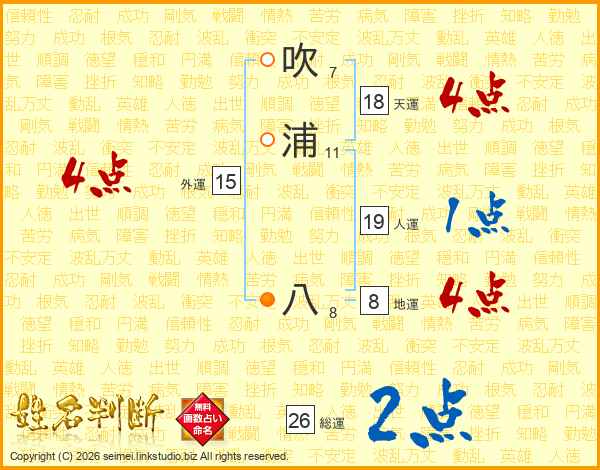 吹浦八さんの総運は26画の2点!