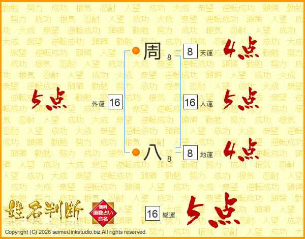 周八さんの総運は16画の5点!