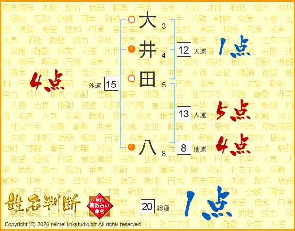 大井田八さんの人運は13画の5点!