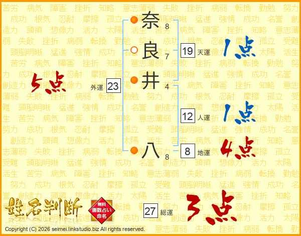 奈良井八さんの天運は19画の1点!