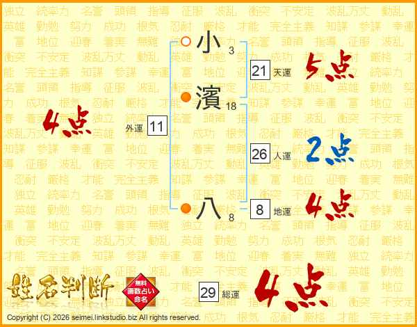小濱八さんの総運は29画の4点!