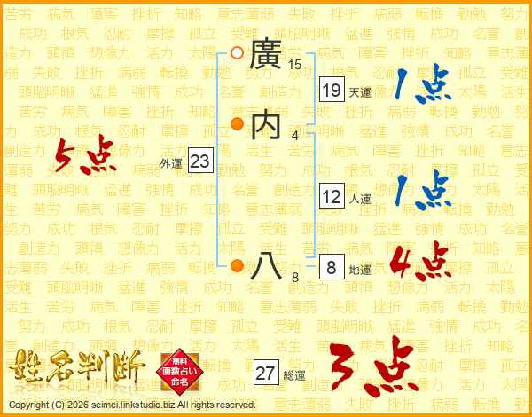 廣内八さんの天運は19画の1点!