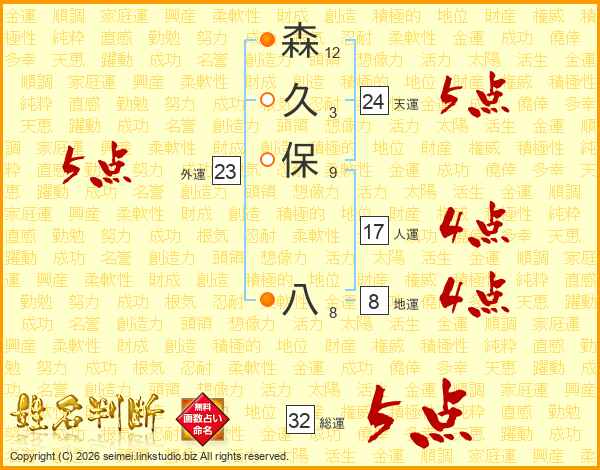森久保八さんの総運は32画の5点!