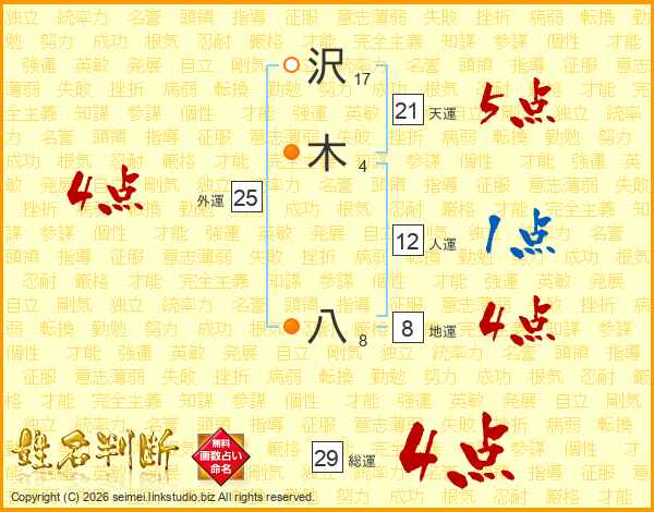 沢木八さんの総運は29画の4点!