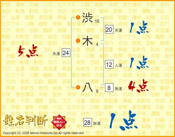 渋木八さんの総運は28画の1点!