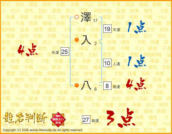澤入八さんの天運は19画の1点!