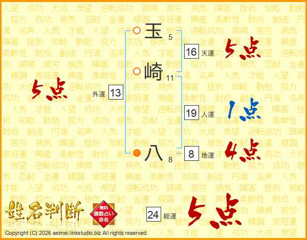 玉崎八さんの総運は24画の5点!