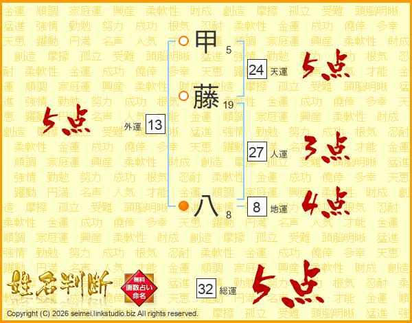 甲藤八さんの総運は32画の5点!