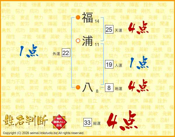 福浦八さんの総運は33画の4点!