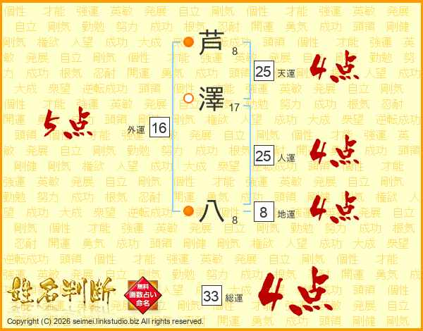 芦澤八さんの天運は25画の4点!